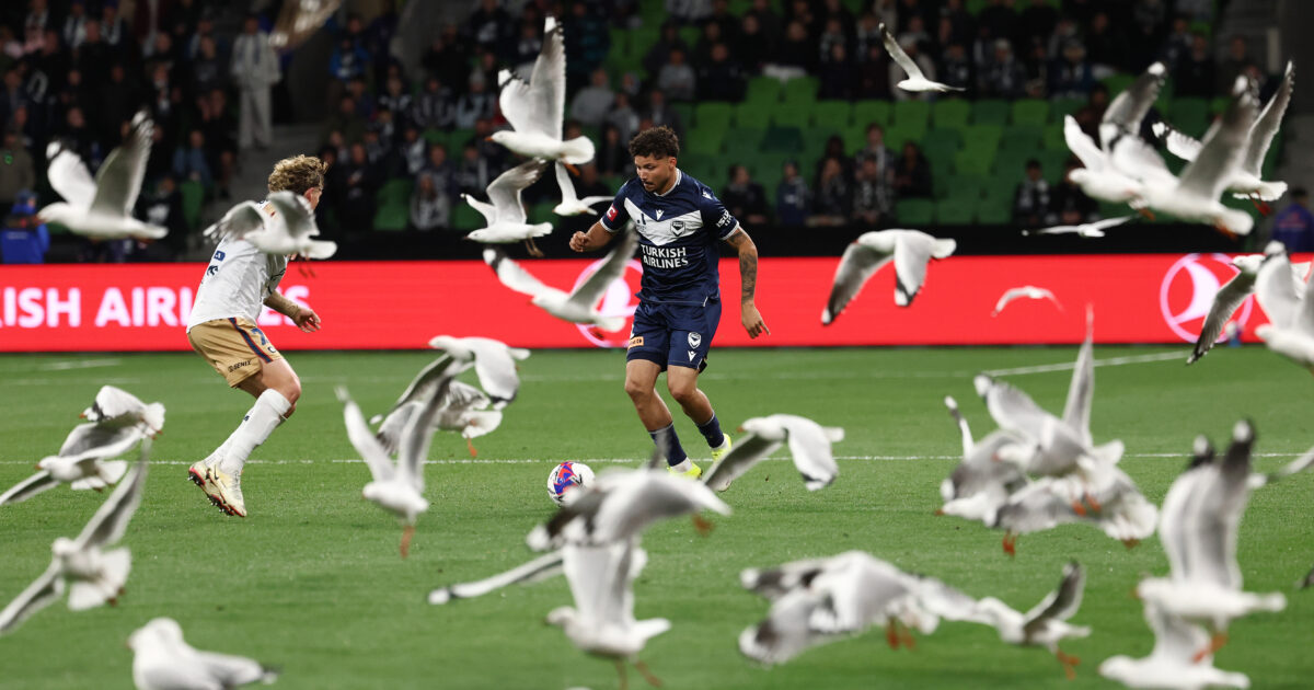Η αναμέτρηση της Μέλμπουρν Βίκτορ Κλαμπ με τους Νιουκάστλ Τζετς στην Αυστραλία, χρειάστηκε να διακοπεί για λίγα λεπτά, καθώς ο αγωνιστικός χώρος γέμισε με γλάρους.