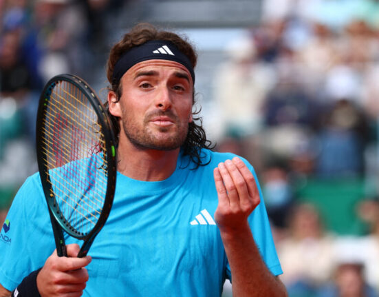 Η Κατερίνα Καινούργιου φορούσε ένα ροζ παντελόνι και ένα γαλάζιο πουκάμισο με ροζ μανίκια, τα οποία συνδύασε με τα αγαπημένα της sneakers.